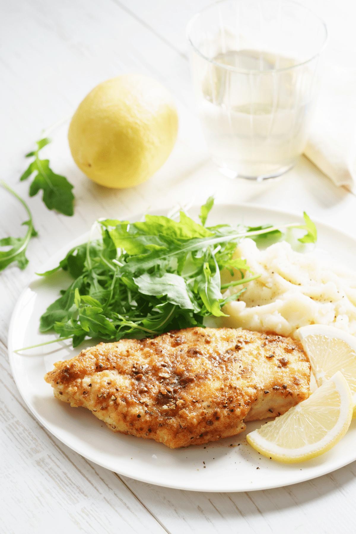 Juicy chicken cutlets are lightly fried and then smothered in a luscious lemon sauce, enhanced by the briny pop of capers.