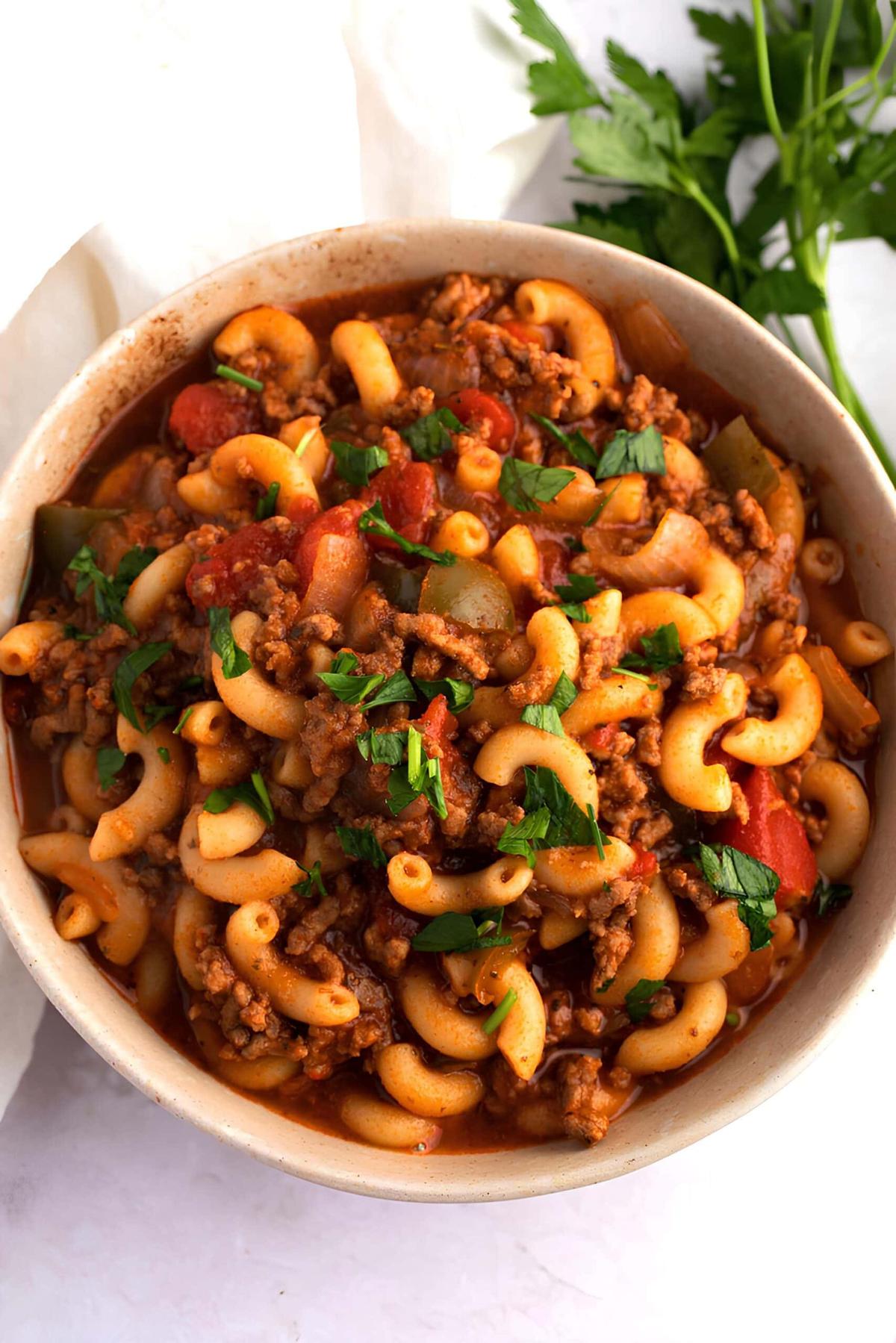 American goulash warms the soul with its hearty blend of ingredients.