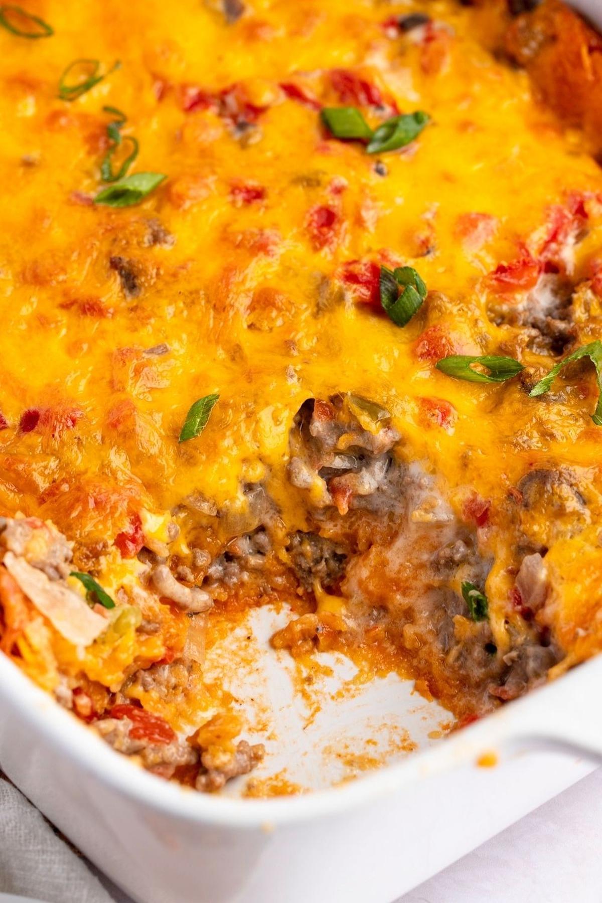 This dish layers seasoned meat with creamy goodness and melted cheese, all topped with the irresistible crunch of Doritos.