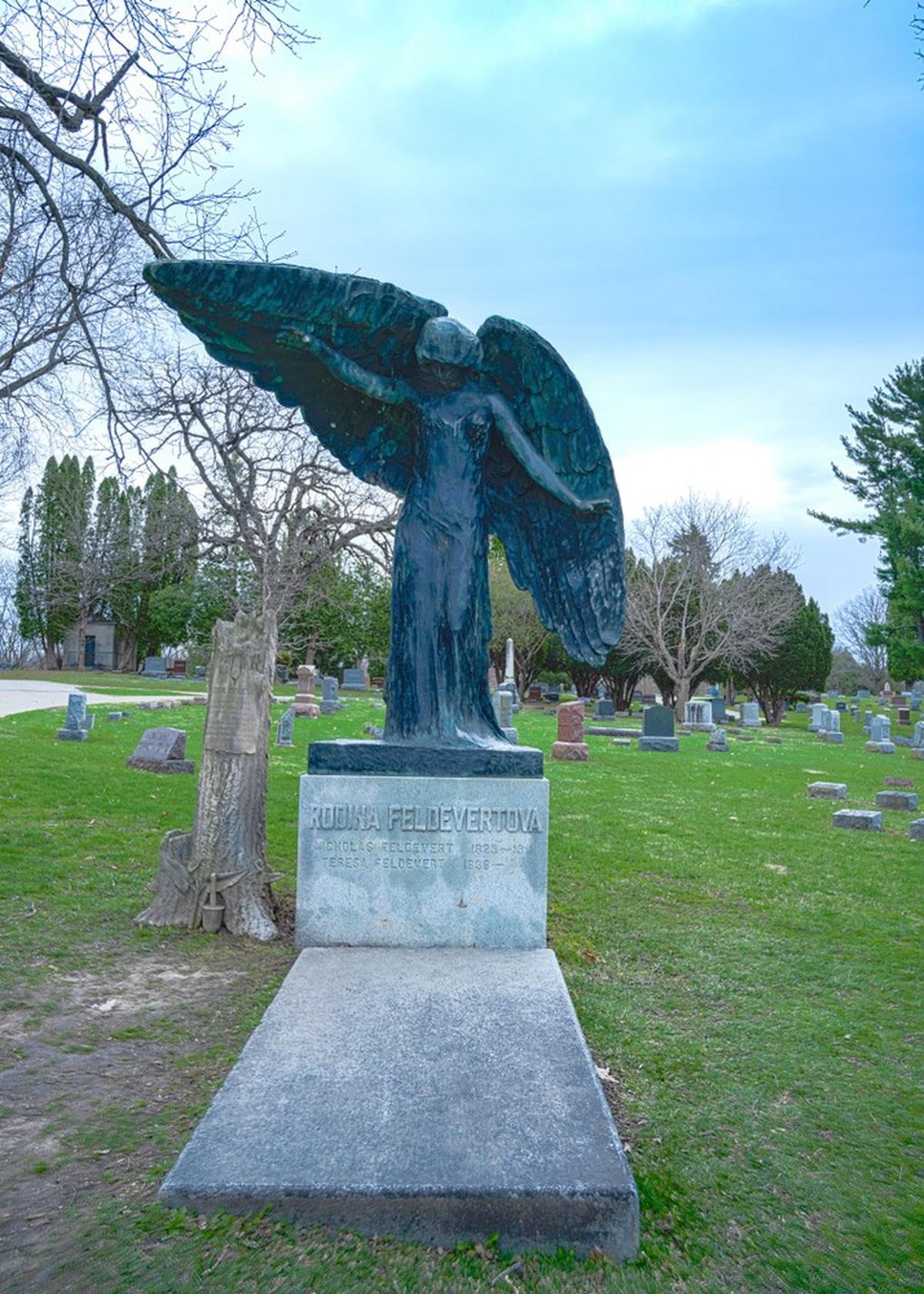 The statue’s haunting presence amid the gravestones adds an eerie atmosphere to the cemetery, making it a fascinating spot for those intrigued by the paranormal and the unexplained.